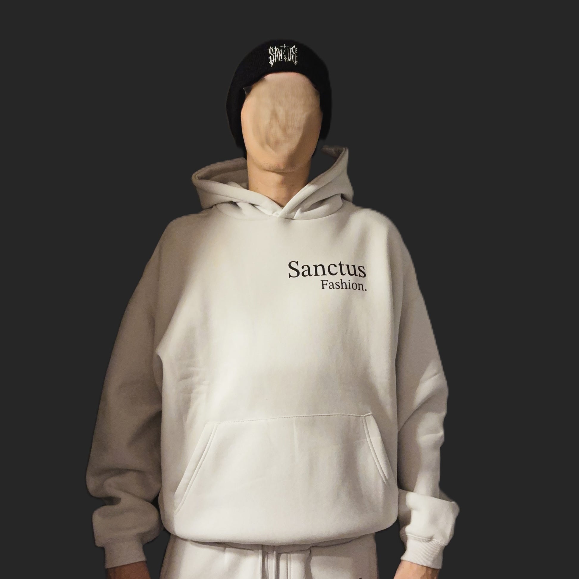 Complete your look with the Sanctis Signature Tracksuit — the embodiment of balance between simplicity and statement. Combining the hoodie and bottoms, this set redefines faith-inspired streetwear with precision and poise.
